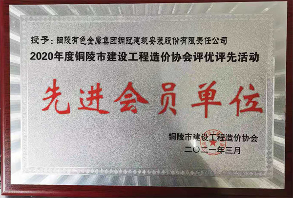 銅陵市造價協(xié)會先進會員單位