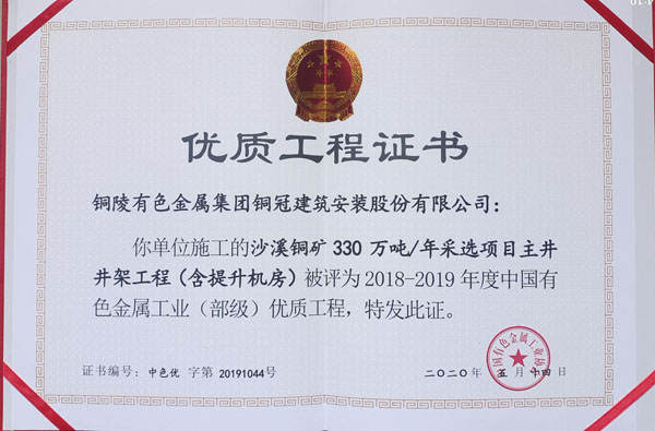 沙溪銅礦采選項目主井井架工程(部優(yōu))